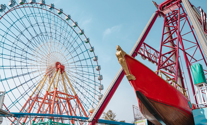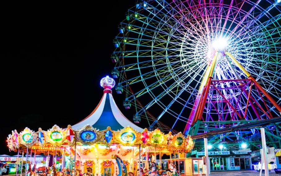 옛날 놀이공원의 향수를 느낄 수 있는 분위기와 놀이기구들이 있습니다. 대관람차, 바이킹, 디스코 팡팡, 회전목마 등 다양한 연령층이 즐길 수 있는 놀이기구가 있습니다.
