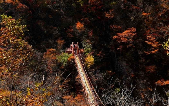 케이블카를 타고 정상에 오르면 펼쳐지는 단풍 파노라마는 물론, 금강구름다리에서 내려다보는 수려한 계곡과 어우러진 단풍 또한 놓칠 수 없는 절경입니다.