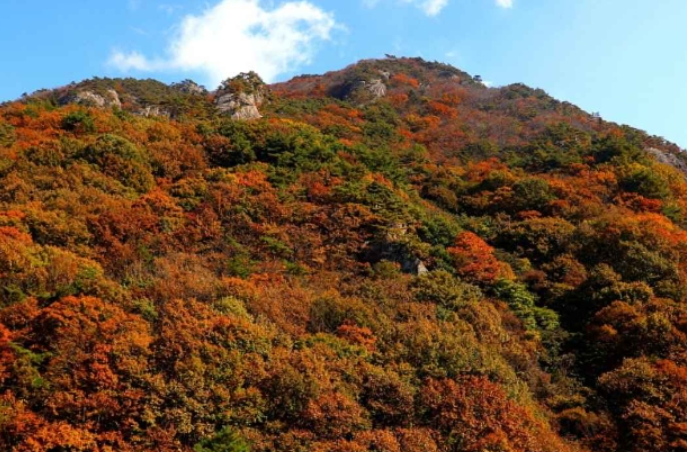 가을에는 붉게 물든 단풍이 산 전체를 불태우듯 장관을 이루며, 겨울에는 하얀 눈꽃으로 뒤덮인 설경이 아름다워 사계절 내내 등산객들의 발길이 끊이지 않습니다.