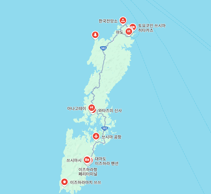 대마도(쓰시마섬)는 한국과 일본 사이 대한해협에 위치한 섬으로, 예로부터 두 나라의 중계지 역할을 해왔습니다. 지리적으로 한반도에 더 가까워 맑은 날에는 한국의 산과 건물이 보이기도 합니다. 대마도는 남북으로 길고 좁은 형태를 띠고 있으며, 섬의 대부분이 산지로 이루어져 평지가 적습니다.