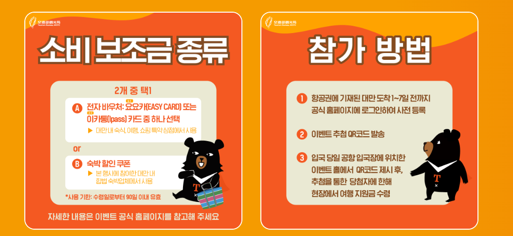 이번 시간에는 대만 여행지원금과 준비물등 여러 정보들을 정리하여 안내해 드릴테니 꼭 참고하셔서 도움이 되시기 바랍니다.