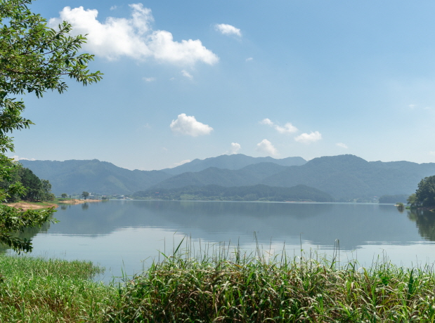 댐 위에서 바라보는 드넓은 대청호의 전경은 시원하게 뻥 뚫린 시야와 함께 가슴까지 뻥 뚫리는 듯한 상쾌함을 선사합니다. 특히 맑은 날에는 호수 위로 비치는 하늘과 주변 산의 그림자가 한 폭의 그림처럼 펼쳐져 탄성을 자아내게 합니다. 댐 주변으로는 걷기 좋은 공원과 산책로가 잘 조성되어 있어 여유롭게 산책을 즐기기에도 좋습니다.