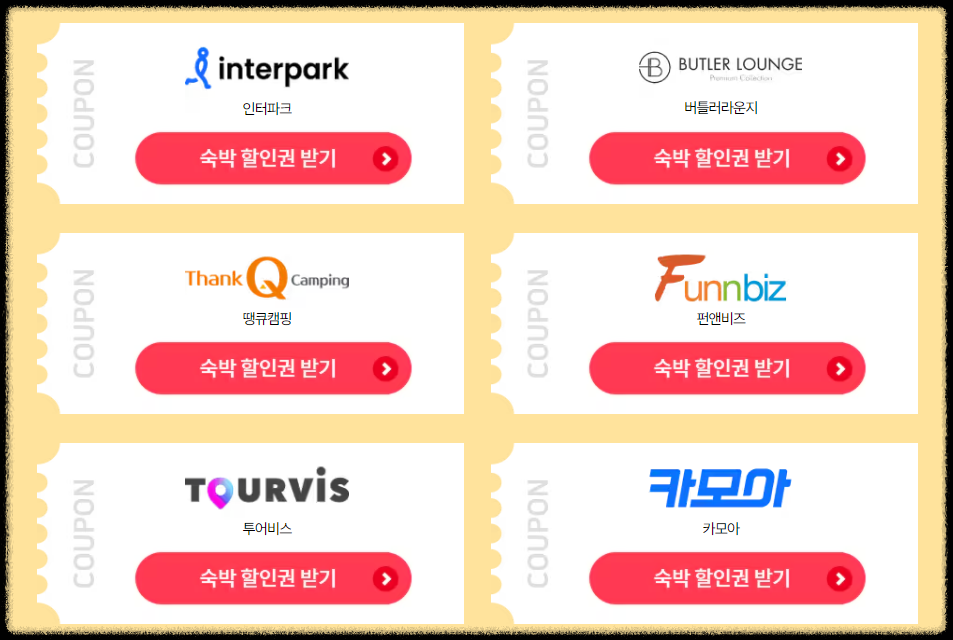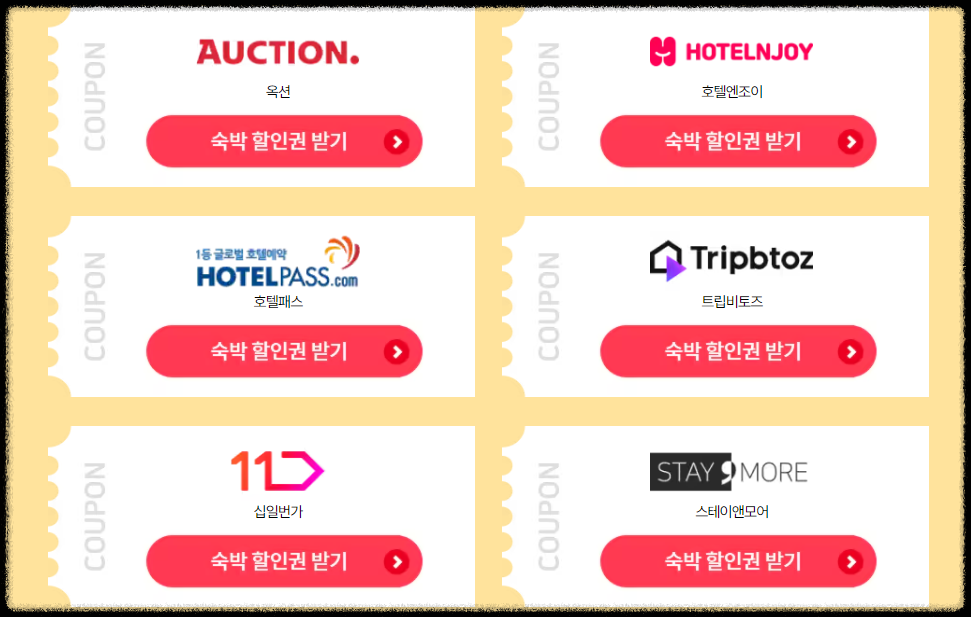 쿠폰 발급 페이지 이동: 각 웹사이트의 메인 페이지나 이벤트 페이지에서 숙박세일페스타 쿠폰 발급 배너를 찾아 클릭합니다.