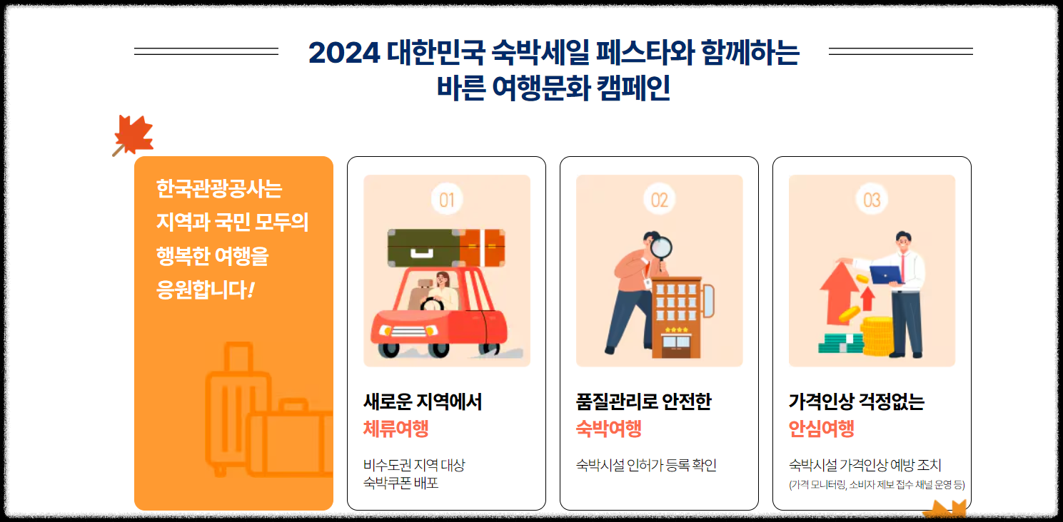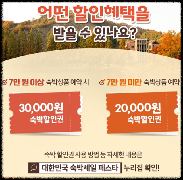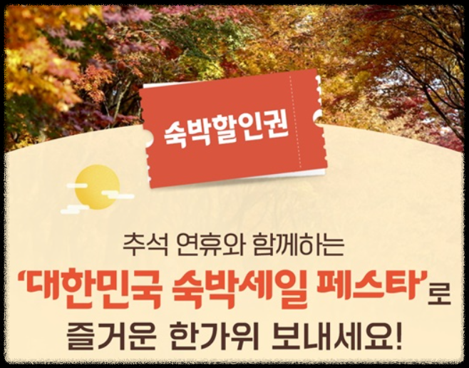 숙박 세일 페스타란 문화체육관광부와 한국관광공사는 추석 황금연휴를 맞아 국내 여행 활성화를 위해 진행하는 것입니다.