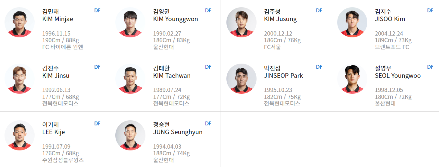 지난번 경기에서는 김승규, 이기제, 김민재, 박용우, 황인범, 손흥민, 조규성, 이재성, 정승현, 이강인, 설영우 선수가 선발 출전하였습니다. 일부 선수들의 경우 좋지 못한 평가등을 받기도 하였습니다.