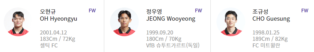 지난번 경기에서는 김승규, 이기제, 김민재, 박용우, 황인범, 손흥민, 조규성, 이재성, 정승현, 이강인, 설영우 선수가 선발 출전하였습니다. 일부 선수들의 경우 좋지 못한 평가등을 받기도 하였습니다.