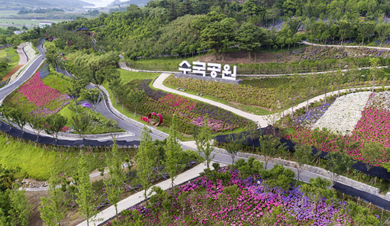 도초도의 수국정원은 약 193,232㎡의 넓은 면적을 자랑하며, 다양한 테마 정원으로 구성되어 있습니다.