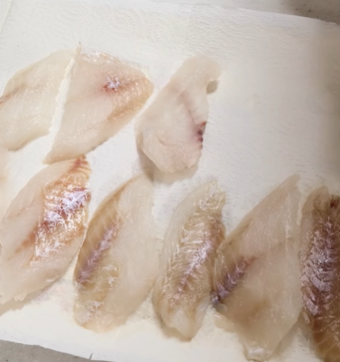 동태의 물기를 제거하고 소금, 후추, 청주(또는 미림), 다진 마늘, 다진 생강 등을 뿌려 10분에서 30분 정도 재워 밑간합니다. 밑간 후에는 키친타월로 동태의 물기를 꼼꼼하게 제거해 줍니다.