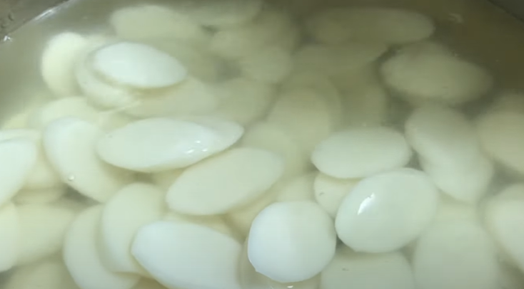 가래떡을 사용할 경우에는 어슷하게 썰어서 사용하고, 떡볶이 떡을 사용할 경우에는 떡볶이 떡보다 조금 더 얇게 썰어서 사용하는 것이 좋습니다.