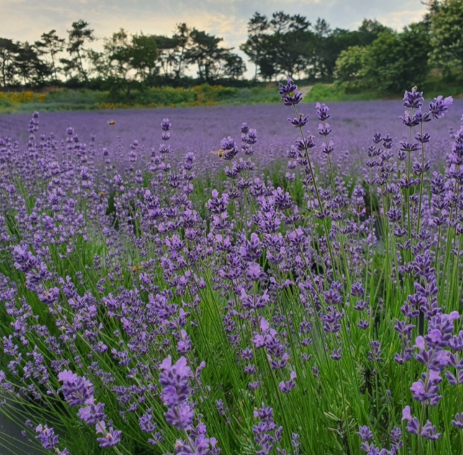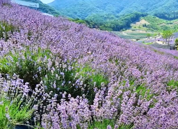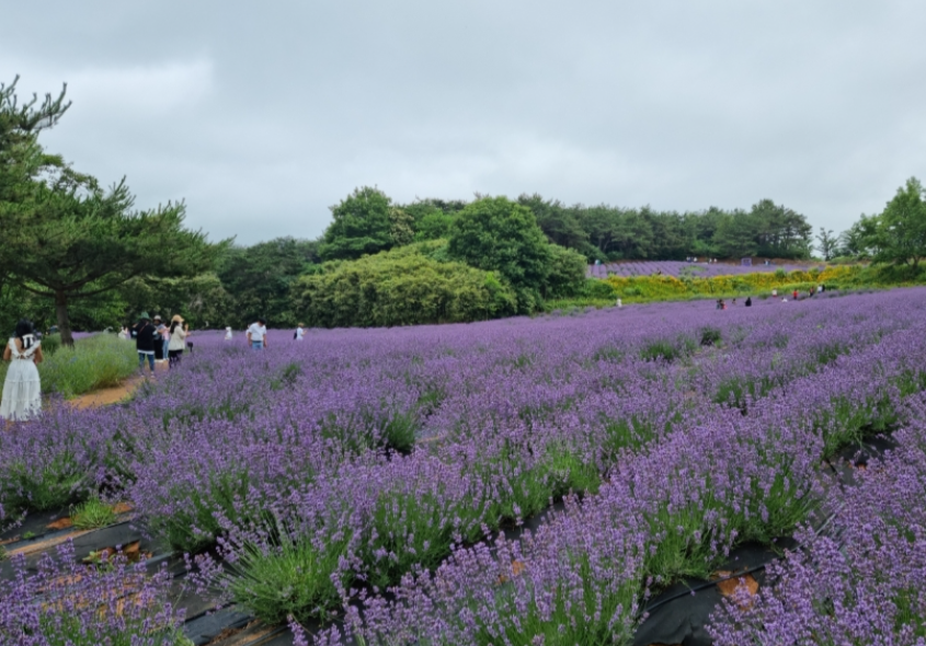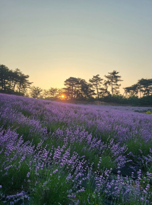 보랏빛 라벤더 밭은 3만여 평에 달하는 광활한 라벤더 밭은 마치 보랏빛 융단을 깔아놓은 듯한 장관을 연출합니다.