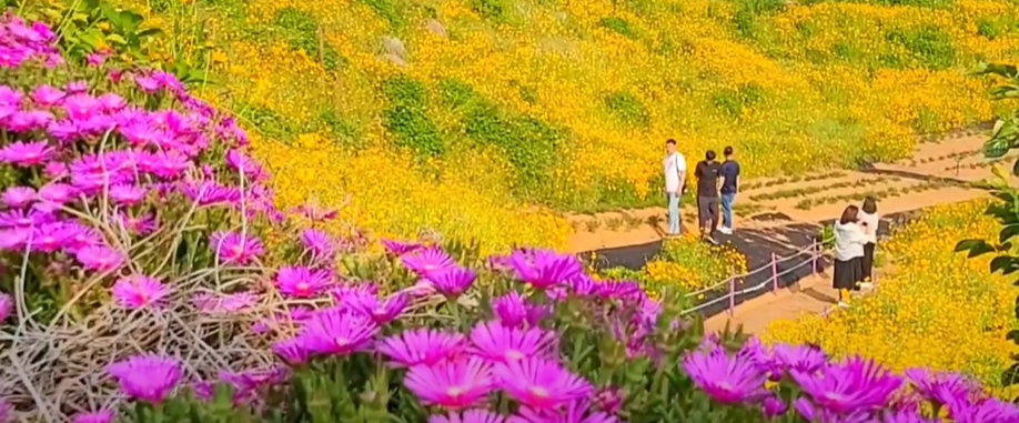 조선시대 성곽과 어우러진 라벤더 꽃밭은 독특하고 아름다운 풍경을 자아냅니다. 푸른 남해 바다를 배경으로 펼쳐진 보랏빛 라벤더는 낭만적인 분위기를 연출합니다.