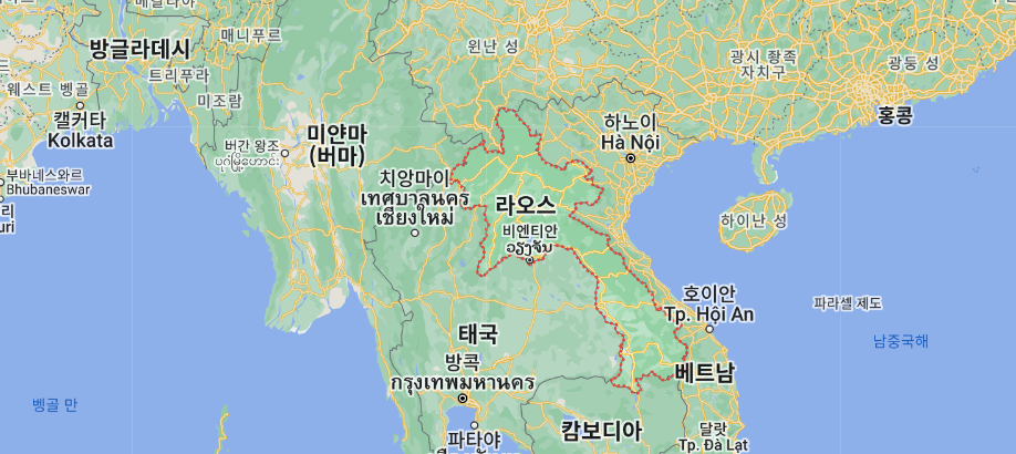 라오스는 동남아시아의 심장부에 위치한 유일한 내륙국으로, 북쪽으로는 중국과 미얀마, 동쪽으로는 베트남, 남쪽으로는 캄보디아, 서쪽으로는 태국과 국경을 맞대고 있습니다. 수도는 비엔티안입니다.