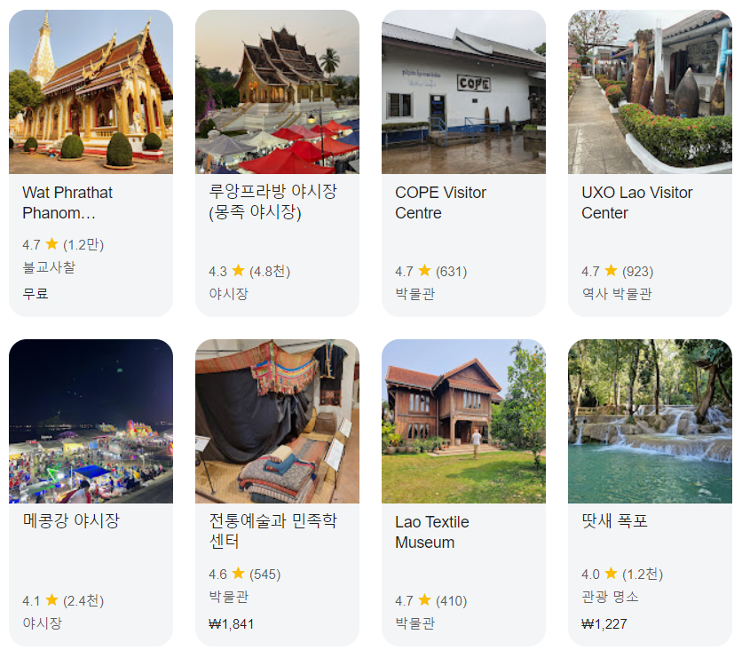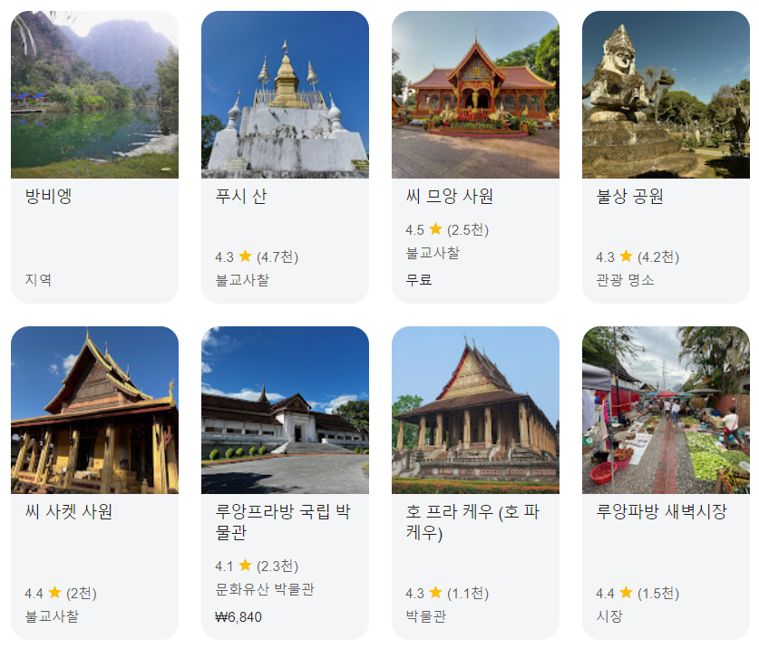 라오스는 한국인 관광객들이 많이 찾는 곳입니다. 특히 루앙프라방, 방비엥, 씨판돈 등은 아름다운 자연 경관과 유서 깊은 사원들이 있어 인기가 많습니다.