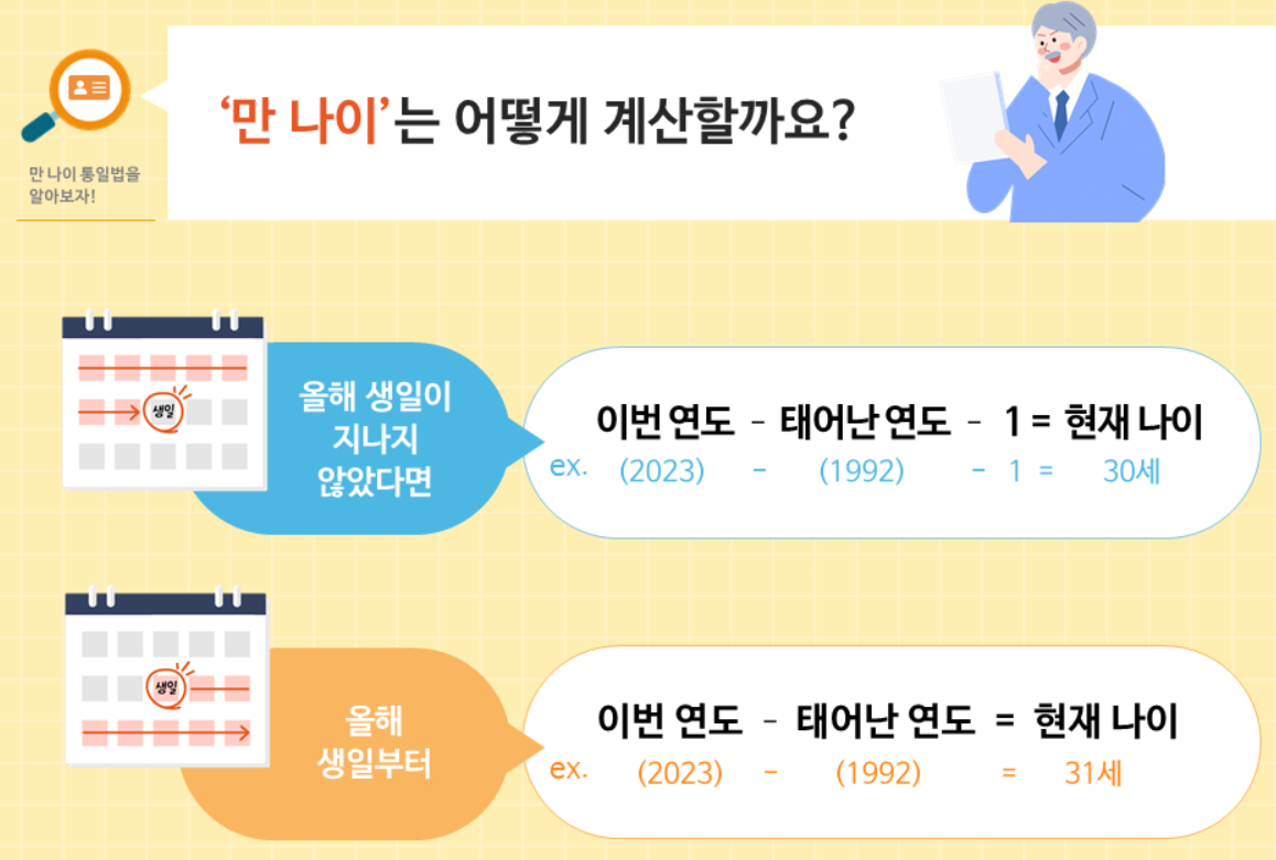 나이 계산에 대한 새로운 적용을 하게 되었습니다. 관련법 시행으로 이제 모두 법적으로 만나이로 통합을 하게 된 것입니다. 만나이란 무엇이고 어떻게 적용되고 계산이 되는지등 궁금하신 점들이 있으실 것입니다. 이번 포스팅에서는 만나이 계산기와 계산방법을 비롯하여 앞으로 사회에 어떻게 적용이 되는지까지 구체적으로 정리해서 안내해 드리도록 하겠습니다.