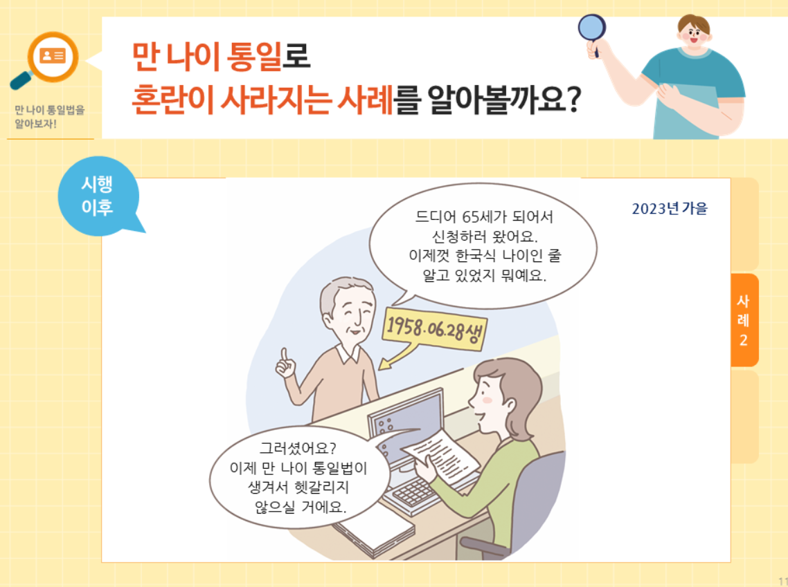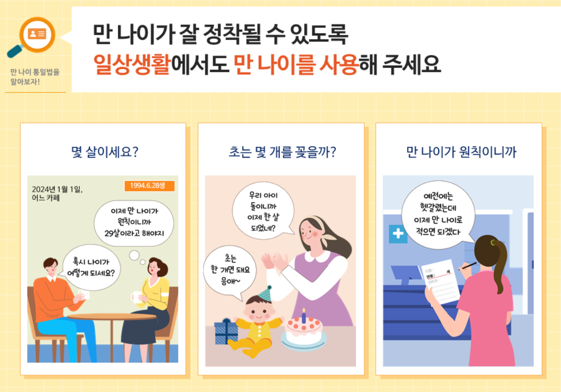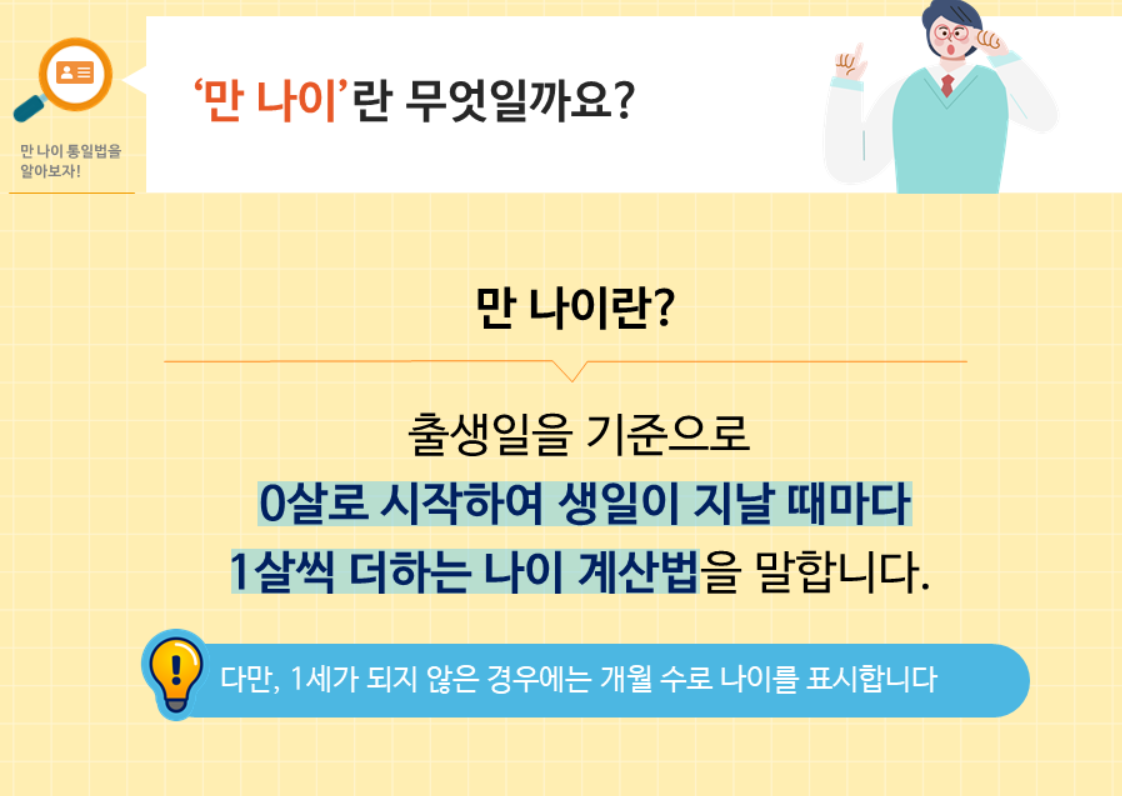 만자가 별도로 없어도 만나이를 기준으로 하는 것입니다. 연령 계산이 보다 간편해지고 연령에 따른 권리와 의무의 적용이 보다 명확해질 것으로 기대되는 효과가 있습니다.
