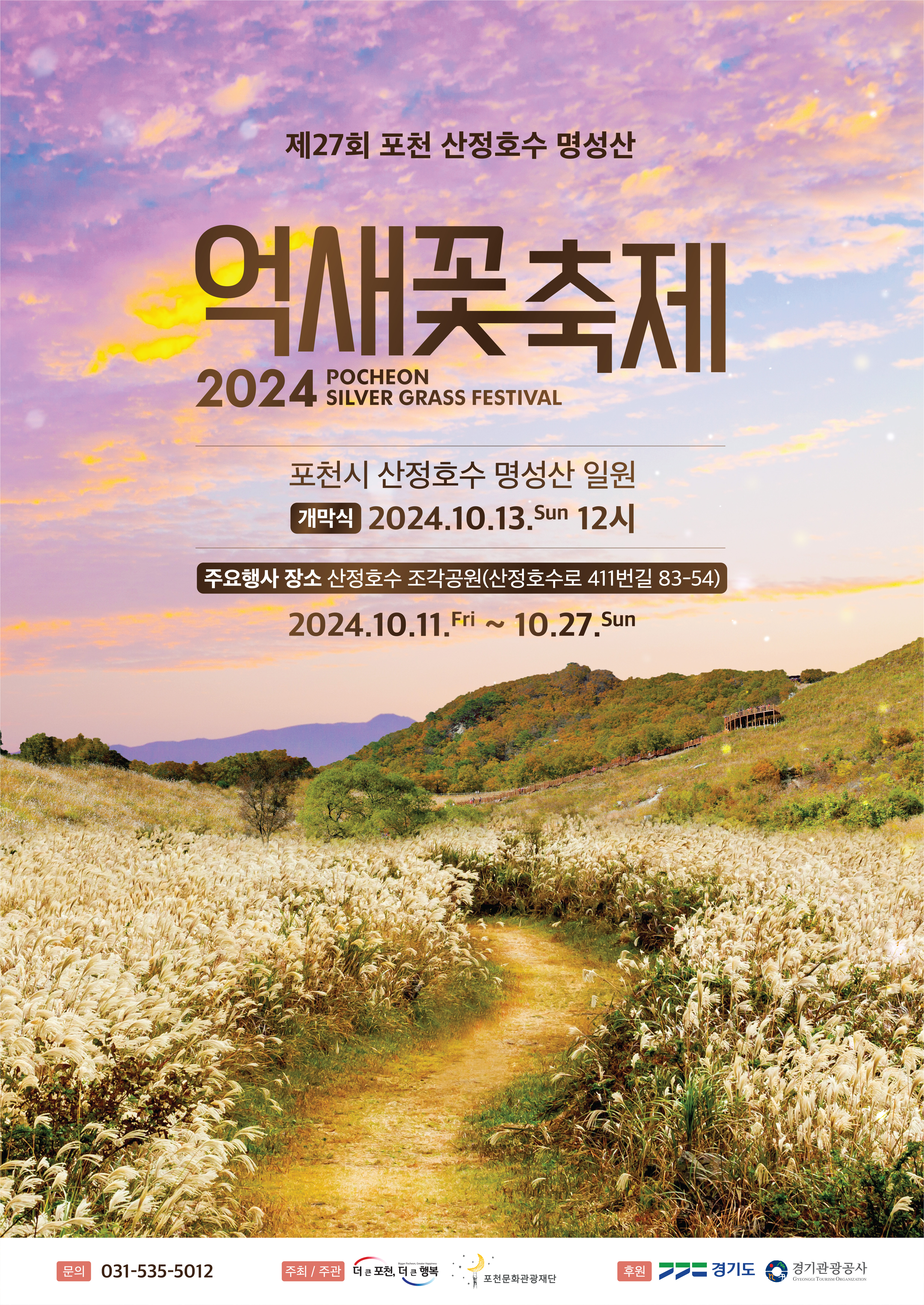 포천시와 포천문화관광재단이 공동으로 주최하는 이 축제는 올해 경기관광축제로 선정되어 더욱 기대를 모으고 있습니다. 억새꽃 축제의 공식 개막 행사는 13일 낮 12시부터 오후 3시까지 산정호수 조각공원에서 진행됩니다.