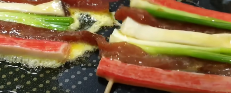 재료: 꼬치전은 햄, 맛살, 버섯, 파, 단무지 등 다양한 재료를 사용할 수 있습니다. 맛의 조화뿐만 아니라 색의 조화도 중요하므로, 빨강, 노랑, 초록 등 다양한 색깔의 재료들을 선택하는 것이 좋습니다.