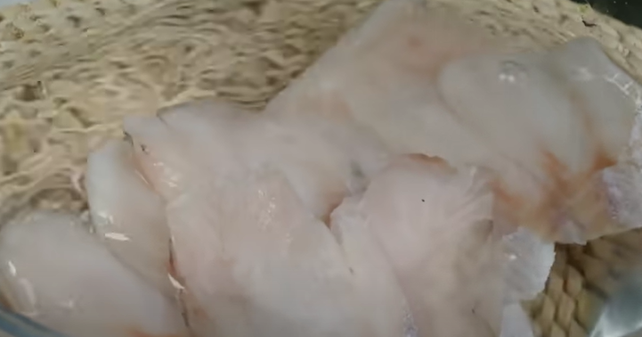만드는 과정: 먼저, 냉동 동태포는 실온 또는 냉장에서 해동한 후, 키친타월로 눌러 물기를 꼼꼼하게 제거합니다. 그 다음, 소금과 후추로 밑간을 합니다.