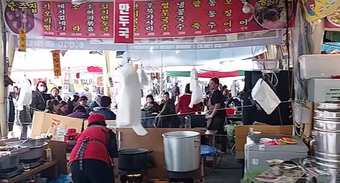 모란시장 상설 구역에는 수돈떡 식당과 춘향골 식당, 두 곳의 무한리필 가게가 있습니다. 수돈떡 식당은 9,500원에 수제 돈가스와 떡갈비를, 춘향골 식당은 10,000원에 오리고기와 돼지 부속을 무제한으로 제공하며, 두 곳 모두 맛과 가성비 면에서는 좋은 평가를 받고 있습니다.