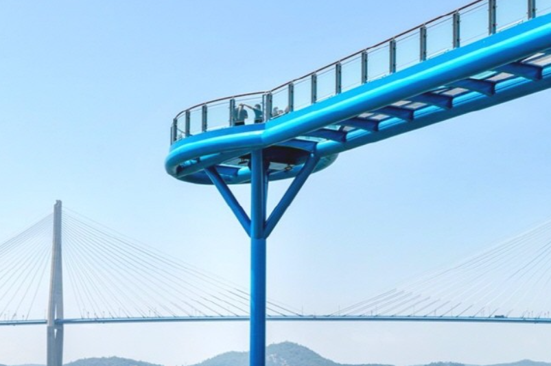 목포의 랜드마크로 자리 잡은 목포 스카이워크는 아찔한 높이에서 탁 트인 바다를 감상할 수 있는 해상 보행교입니다.