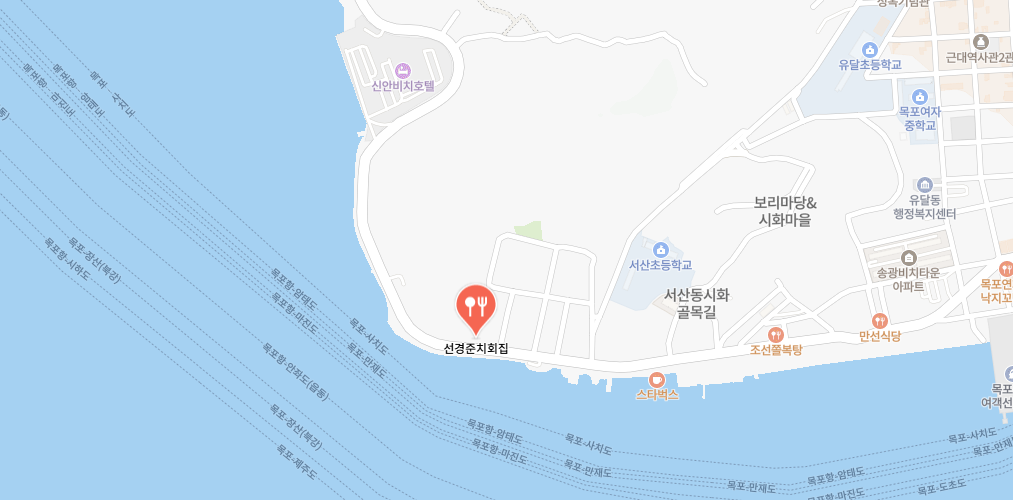 커다란 대접에 공깃밥과 준치회무침을 넣고 슥슥 비벼 먹으면 잃어버린 입맛도 돌아오게 만드는 마력을 지니고 있습니다. 항구 근처에 위치하여 식사 전후로 목포 바다의 정취를 느끼기에도 아주 좋은 장소입니다.