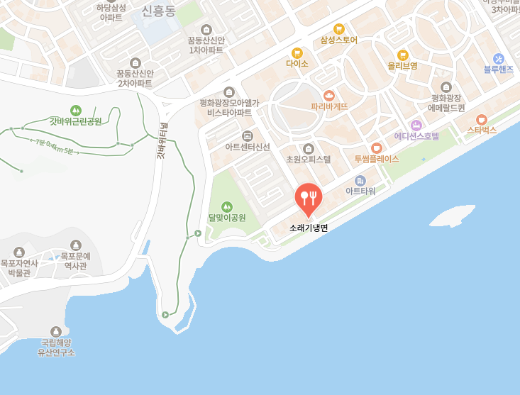 회냉면은 신선한 회가 넉넉히 올라가 식감과 풍미를 동시에 살립니다. 한우 육수를 사용한 물냉면은 깔끔하고 깊은 맛으로 무더운 계절에 특히 인기가 높습니다. 바지락을 아낌없이 넣은 칼국수와 손으로 직접 떼어 넣은 수제비는 시원한 국물 맛을 더해 냉면과 함께 찾는 손님이 많습니다. 주소는 전라남도 목포시 미항로 81입니다.