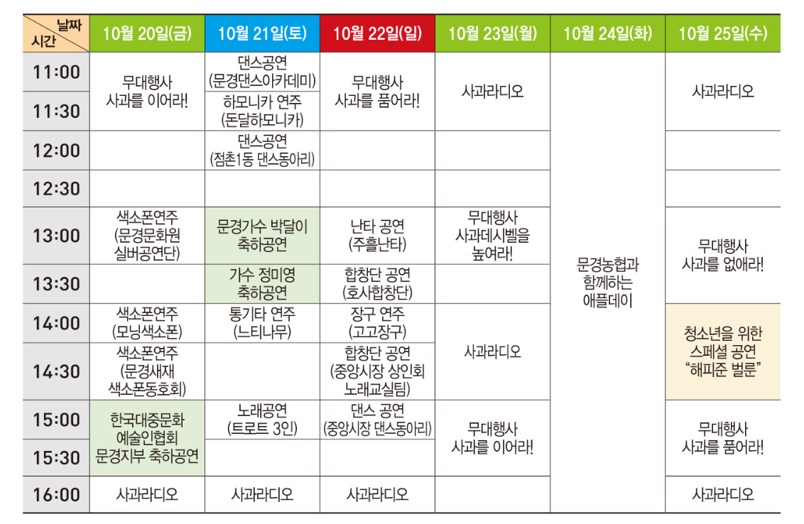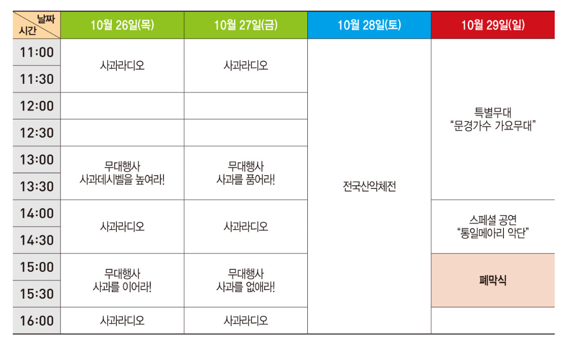 문경 사과축제의 프로그램 남은 일정은 다음과 같습니다.