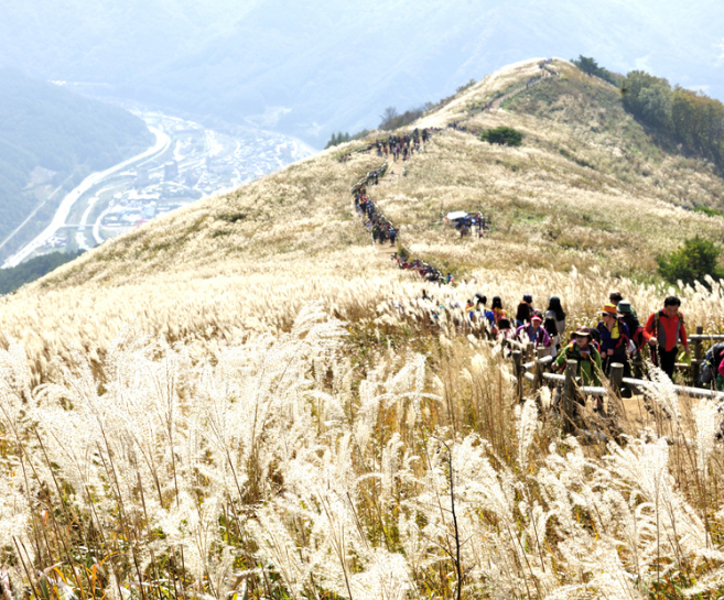 특히 지금은 억새산행 시기로 가을에 방문하면 상당히 좋은 산이며 10월 중순부터 시작하여 11월 초경까지가 억새산행의 적기시기입니다.