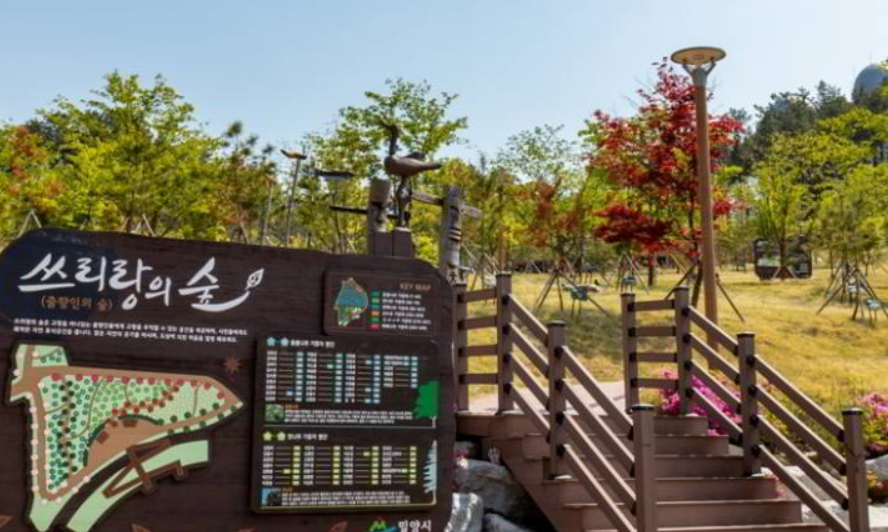 아리랑동산은 숲속 산책로와 함께 밀양아리랑의 가사를 테마로 조성된 공간으로, 아름다운 자연 속에서 밀양아리랑을 느낄 수 있습니다.