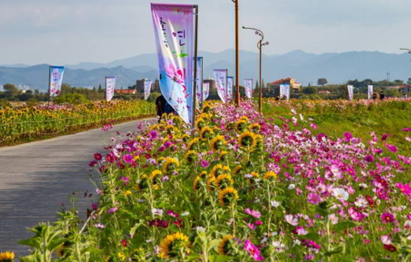 봄에는 양귀비, 가을에는 코스모스가 만개하여 아름다운 꽃길을 걸을 수 있습니다. 초동연가길은 낙동강 반월습지와 함께 어우러져 자연을 만끽하며 산책하기 좋습니다.