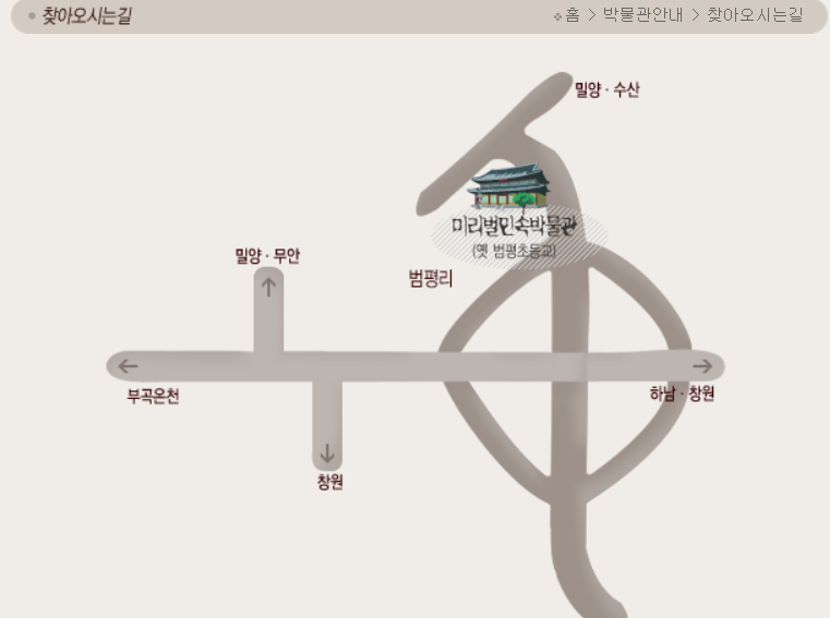 경상남도 밀양시 초동면 초동중앙로 439에 위치하고 있으며 미리벌민속박물관 055-391-2882번으로 문의가 가능합니다.