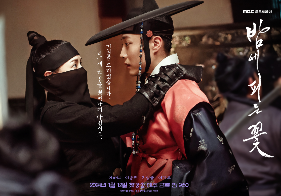 먼저 밤에 피는 꽃 드라마 기본적인 주요 정보부터 소개해 드리도록 하겠습니다. 밤에 피는 꽃은 열녀박씨 계약결혼뎐의 후속으로 방영을 시작한 MBC 금토 드라마입니다.