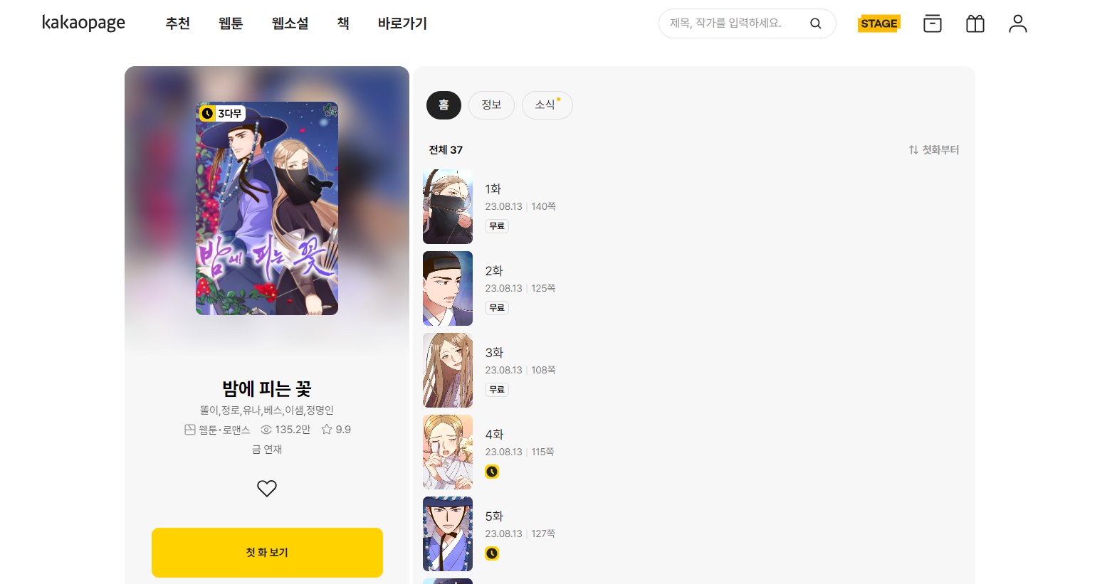 또한 밤에 피는 꽃 드라마는 웹툰과도 관련이 있습니다. 웹툰에 대한 내용을 살펴보도록 하겠습니다.