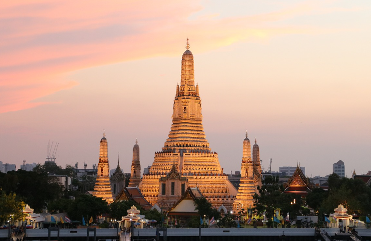 왓 아룬은 짜오프라야 강변에 위치한 아름다운 사원으로, 특히 일몰 시간에 방문하면 황홀한 풍경을 감상할 수 있습니다.