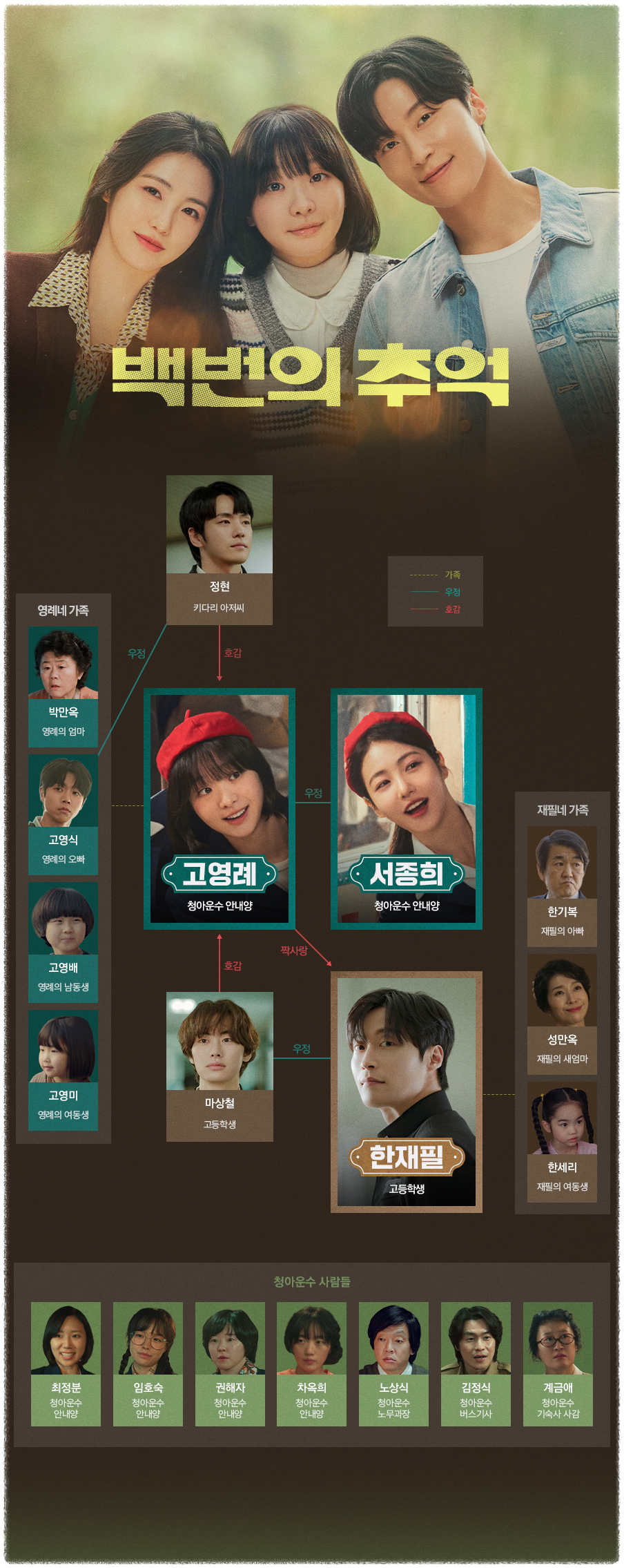 드라마 '백번의 추억'은 1980년대를 배경으로, 100번 버스 안내양으로 일하는 두 여성 고영례와 서종희의 우정과 첫사랑 이야기를 그린 청춘 멜로드라마입니다.