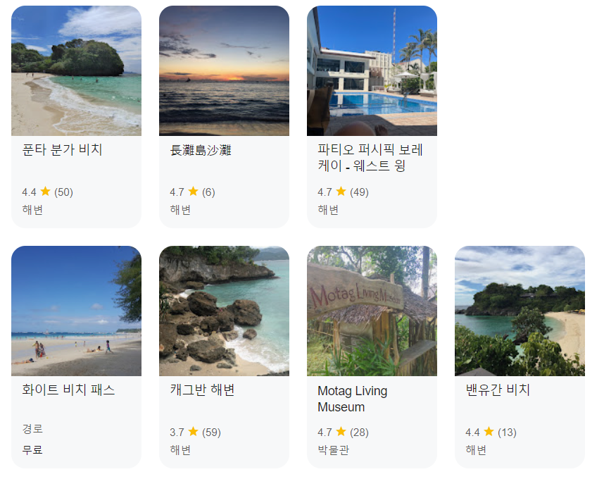 특히 보라카이는 아름다운 자연과 다양한 즐길 거리로 한국인들에게 매우 인기 있는 여행지입니다. 특히 에메랄드빛 바다와 고운 백사장은 휴양을 즐기기에 완벽하며, 다양한 해양 액티비티와 맛집, 마사지샵 등이 있어 지루할 틈이 없습니다.
