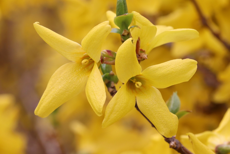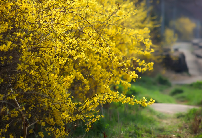 개나리는 낙엽 관목으로 3월부터 4월까지 산과 들에서 피는 봄꽃으로 꽃잎은 노란색이며 꽃잎 끝이 둥글게 퍼져 있습니다. 꽃말은 희망, 기대, 깊은 정등의 뜻을 가지고 있습니다.