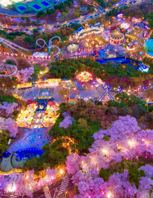 대구 이월드에서 펼쳐지는 블라썸 피크닉도 추천드립니다. 낮에는 아름다운 꽃구경과 놀이기구를 즐기실수 있으며 밤에는 야경이 아름다운 곳으로 유명합니다.