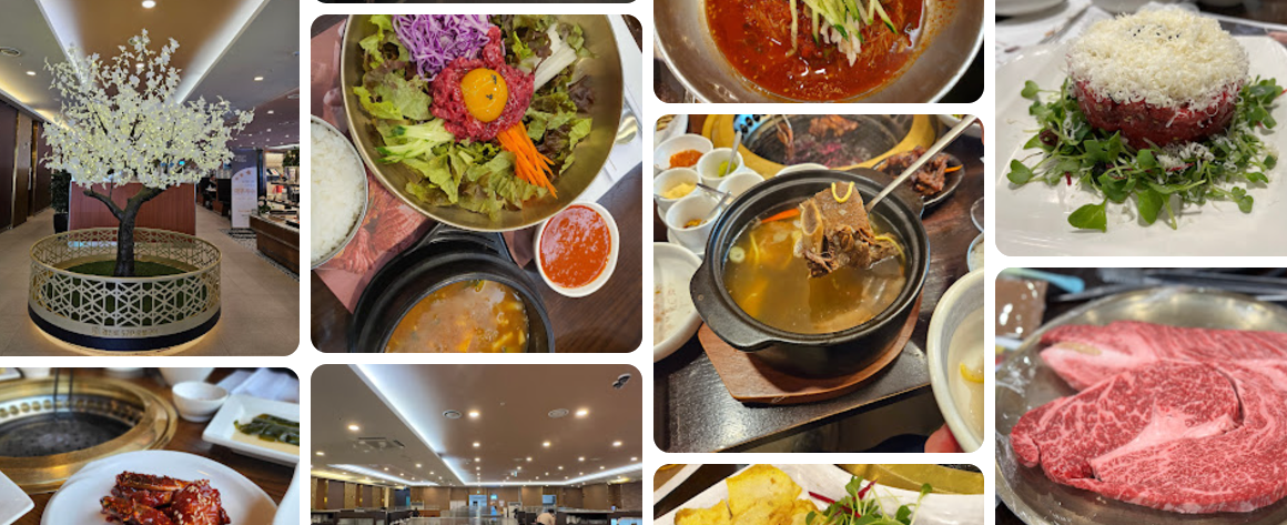 한우 외에도 생갈비, 소 양념갈비, 돼지갈비 등 다양한 구이 메뉴가 준비되어 있으며, 한우육회 비빔밥, 영양갈비탕, 갈비탕 등 식사 메뉴도 훌륭합니다. 평일 점심에는 특별한 런치 메뉴도 즐길 수 있다는 사실!