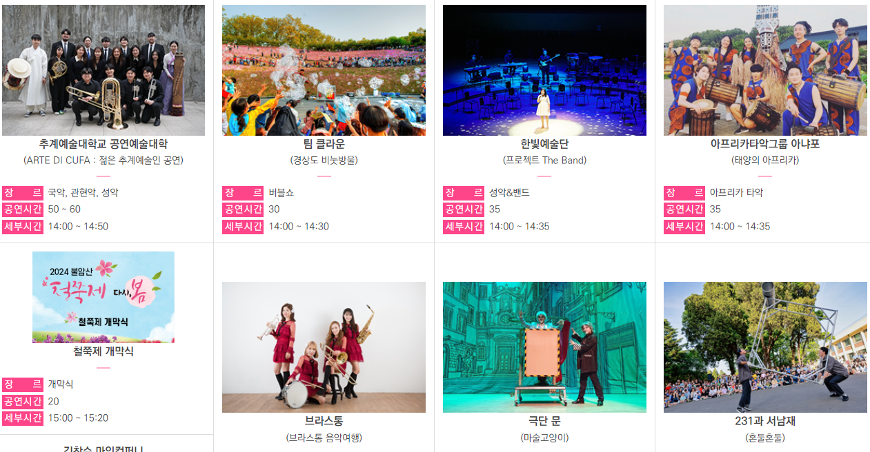 | 군포 철쭉축제기간 가는길 초대가수 프로그램 2024 (0) | 2024.04.23 |