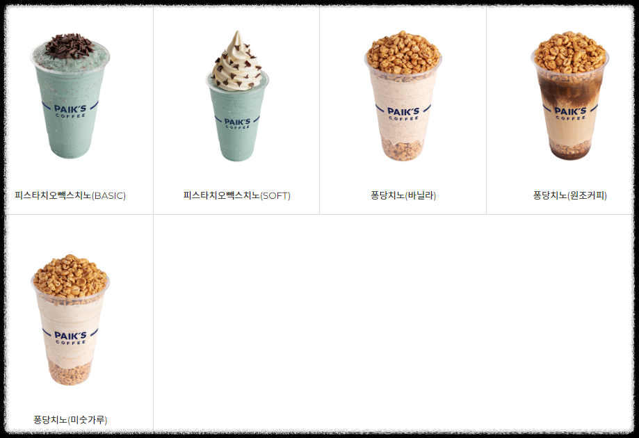 단, 카페인 함량이 높으니 카페인에 민감한 분들은 주의해야 합니다. 고소하고 달콤한 '피스타치오빽스치노'는 빽다방에서 가장 비싼 음료이지만, 피스타치오마루를 컵에 담아 마시는 듯한 풍부한 맛으로 그 값어치를 합니다.