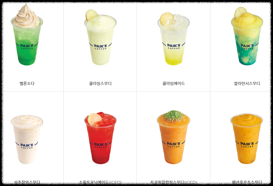 이 부분에 대해 백종원 대표는 직접 입장을 밝히기도 했으며 현재는 각얼음과 간얼음 중 선택할 수 있도록 개선되었습니다. 다음으로 빽다방 메뉴에 대해 종류별로 안내해 드립니다.