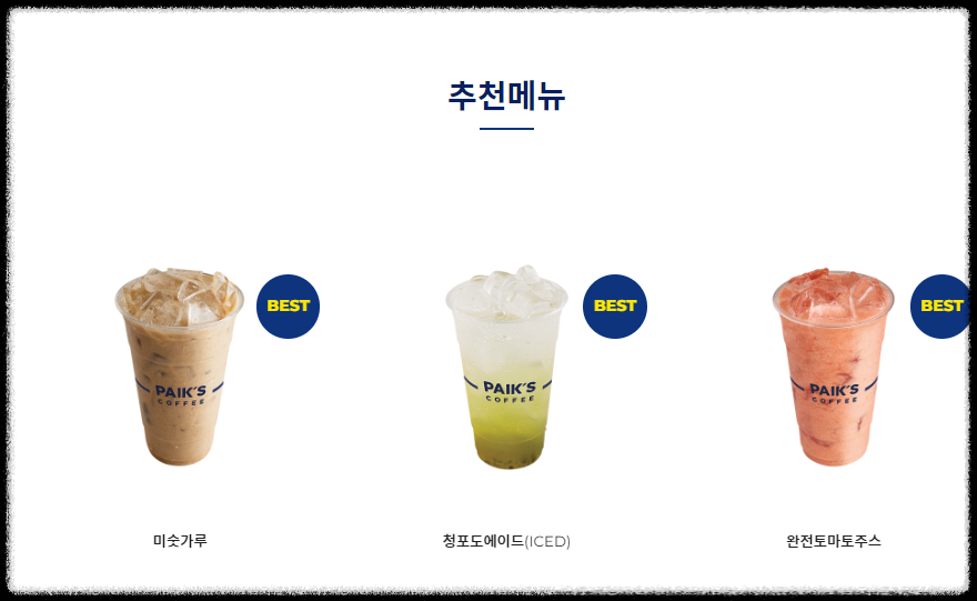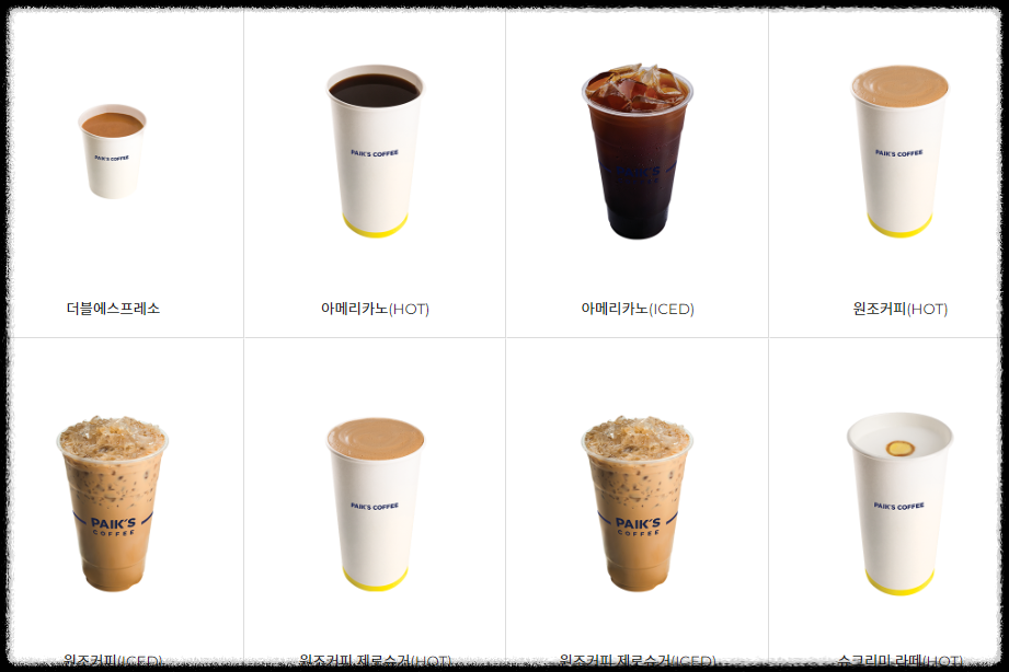 빽다방은 커피뿐만 아니라 다양한 음료 메뉴도 갖추고 있어 취향에 따라 선택하기 좋습니다.