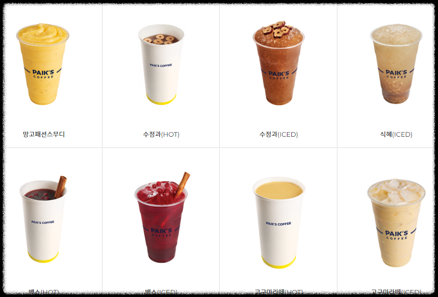 빽다방은 커피뿐만 아니라 다양한 음료 메뉴도 갖추고 있어 취향에 따라 선택하기 좋습니다.