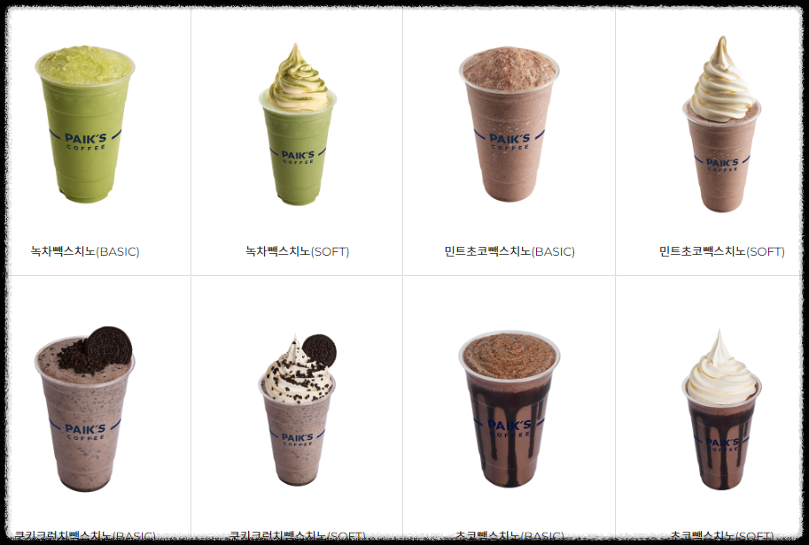 이 부분에 대해 백종원 대표는 직접 입장을 밝히기도 했으며 현재는 각얼음과 간얼음 중 선택할 수 있도록 개선되었습니다. 다음으로 빽다방 메뉴에 대해 종류별로 안내해 드립니다.