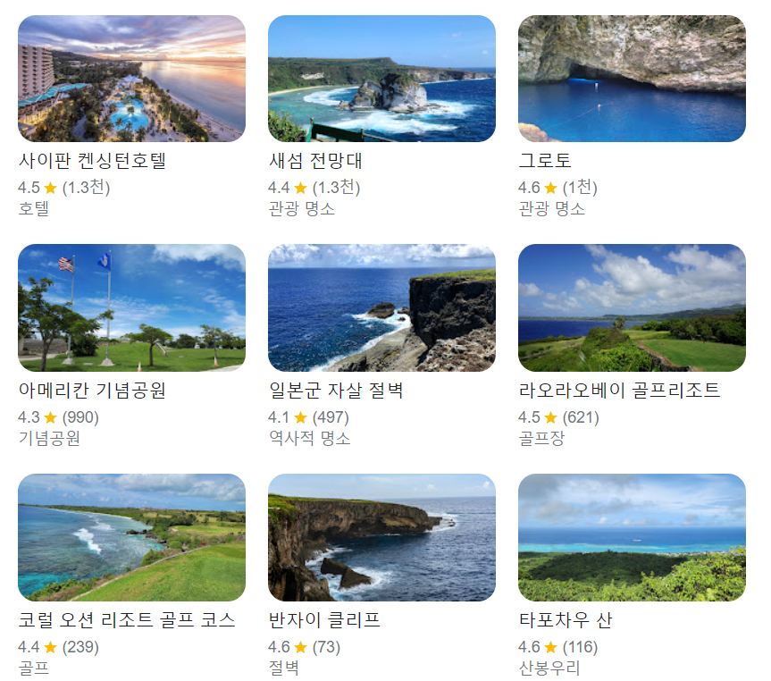 계획된 여행일정에 맞추어서 사이판 여행 코스와 계획을 잘 잡아보시기 바랍니다. 이것으로 모든 포스팅을 마치도록 하겠습니다.