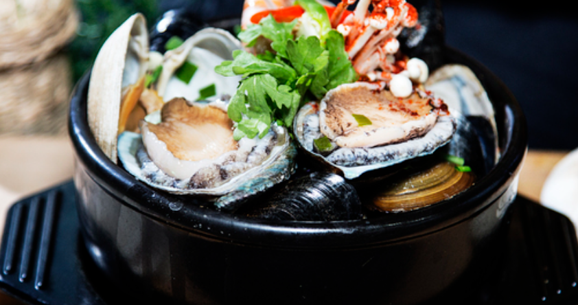 삼척전복해물뚝배기의 대표 메뉴는 전복 해물 뚝배기입니다. 뜨거운 육수에 싱싱한 전복을 살짝 익혀 샤부샤부처럼 먹는 방식이 독특합니다. 쫄깃하고 부드러운 전복의 식감과 시원한 국물이 조화롭게 어우러져 든든한 한 끼 식사로 손색이 없습니다.
