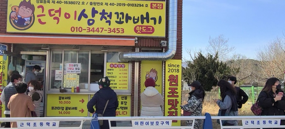 9번 근덕이삼척꽈배기 본점은 삼척 꽈배기 열풍의 또 다른 주역으로 현대적인 감각의 쫄깃한 맛이 특징입니다. 찹쌀을 듬뿍 넣어 반죽한 꽈배기는 식어도 딱딱해지지 않고 부드러운 식감을 유지하여 많은 사랑을 받습니다. 기본 꽈배기 외에도 팥 도너츠와 핫도그 등 다양한 메뉴를 갖추고 있어 취향에 맞게 선택할 수 있습니다.