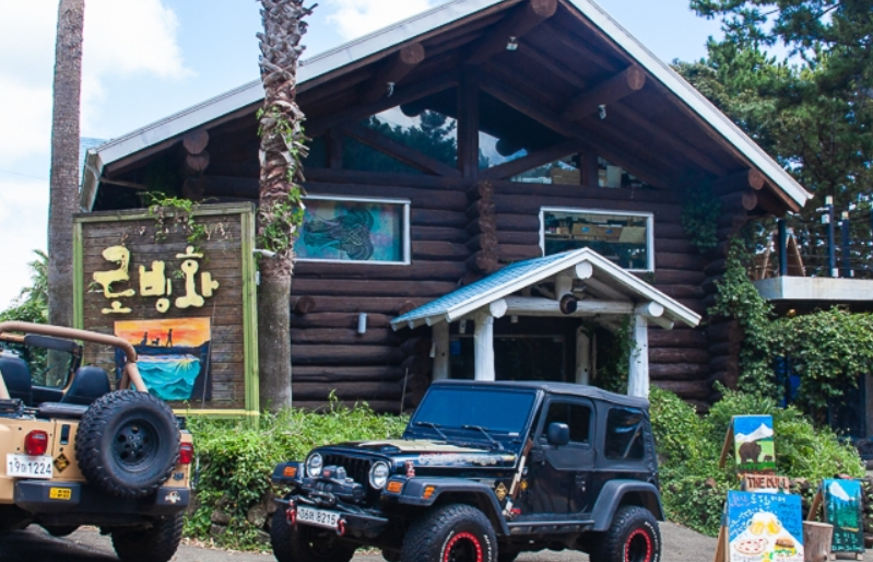 제주 남원 큰엉해안경승지 앞에 위치한 로빙화는 소나무와 야자수로 둘러싸인 이색적인 카페 겸 펍입니다. '로빙화'라는 이름은 겨울에 피어야 할 꽃이 봄에 피고 지며 녹차밭의 양분이 되어준다는 의미를 담고 있습니다.
