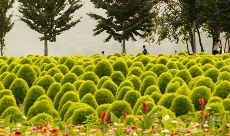 댑싸리 군락은 사진 찍기 좋은 곳으로 유명합니다. 붉은 댑싸리와 푸른 하늘이 어우러진 풍경은 마치 동화 속 세상에 온 듯한 느낌을 줍니다.